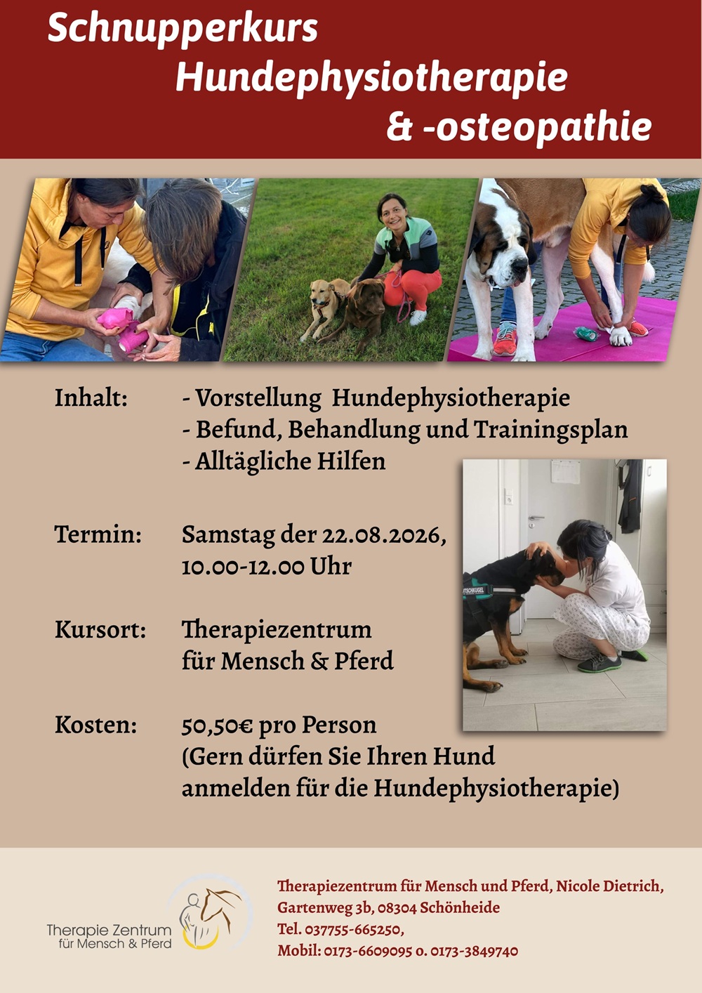 27. - 31.07.2026 - Schnupperkurs Hundephysiotherapie