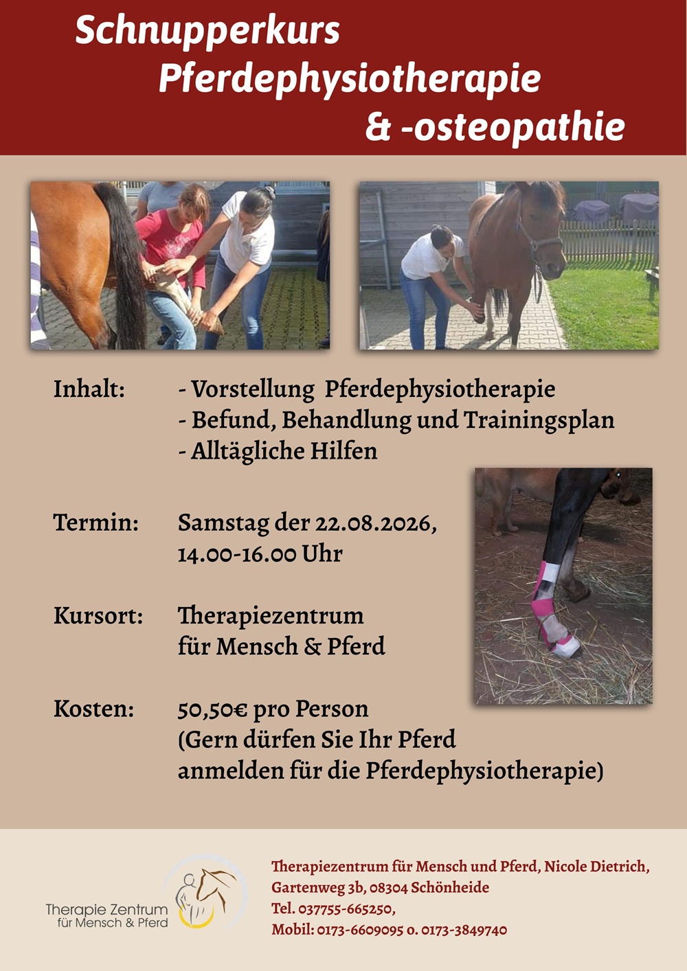 22.08.2026 - Schnupperkurs Pferdephysiotherapie